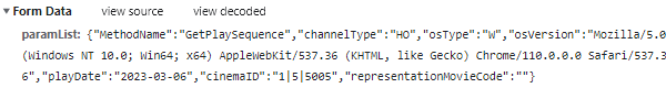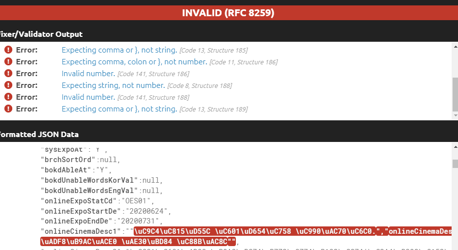 상영 날짜 리스트가 유니코드로 인하여 에러가나서 모바일 api로 바꿨으나 바꿔도 에러가 납니다.