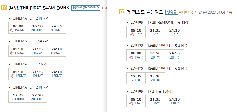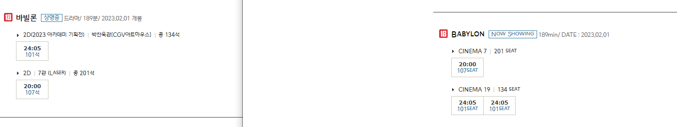 - PlayKind text - 2d, 3d, 4dx 2d, 2d(자막)
