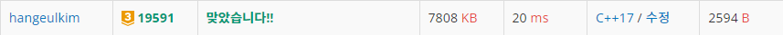 | 19949 - 영재의 시험 (0) | 2023.07.13 |