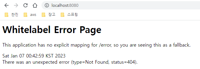 해당 포트로 접근을 해보면 아직 어떤 행동을 할지 어떤 페이지를 보여줄지 설정이 되어 있지않아 에러 페이지가 나오게 됩니다.