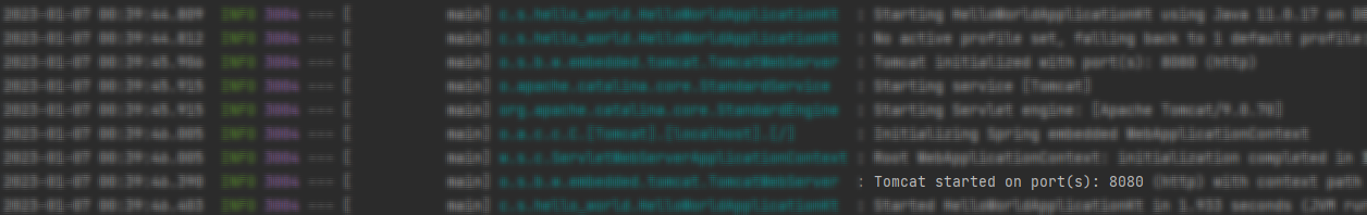 아래 로그를 보시면 몇 번 포트에서 실행중인지 알 수 있습니다.