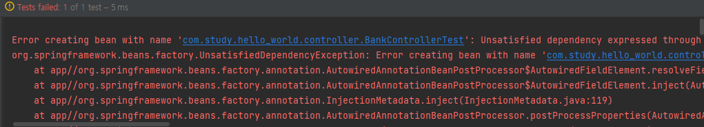 우리는 아직 테스트를 위한 BankController를 제작하지 않았습니다.