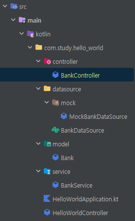 이를 위해 controller 패키지와 BankController class를 만들어 줍니다.