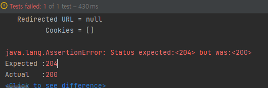 그리고 정말 데이터가 없는지를 확인하기 위해 테스트에 확인하는 mockMvc.get을 추가해줍니다.